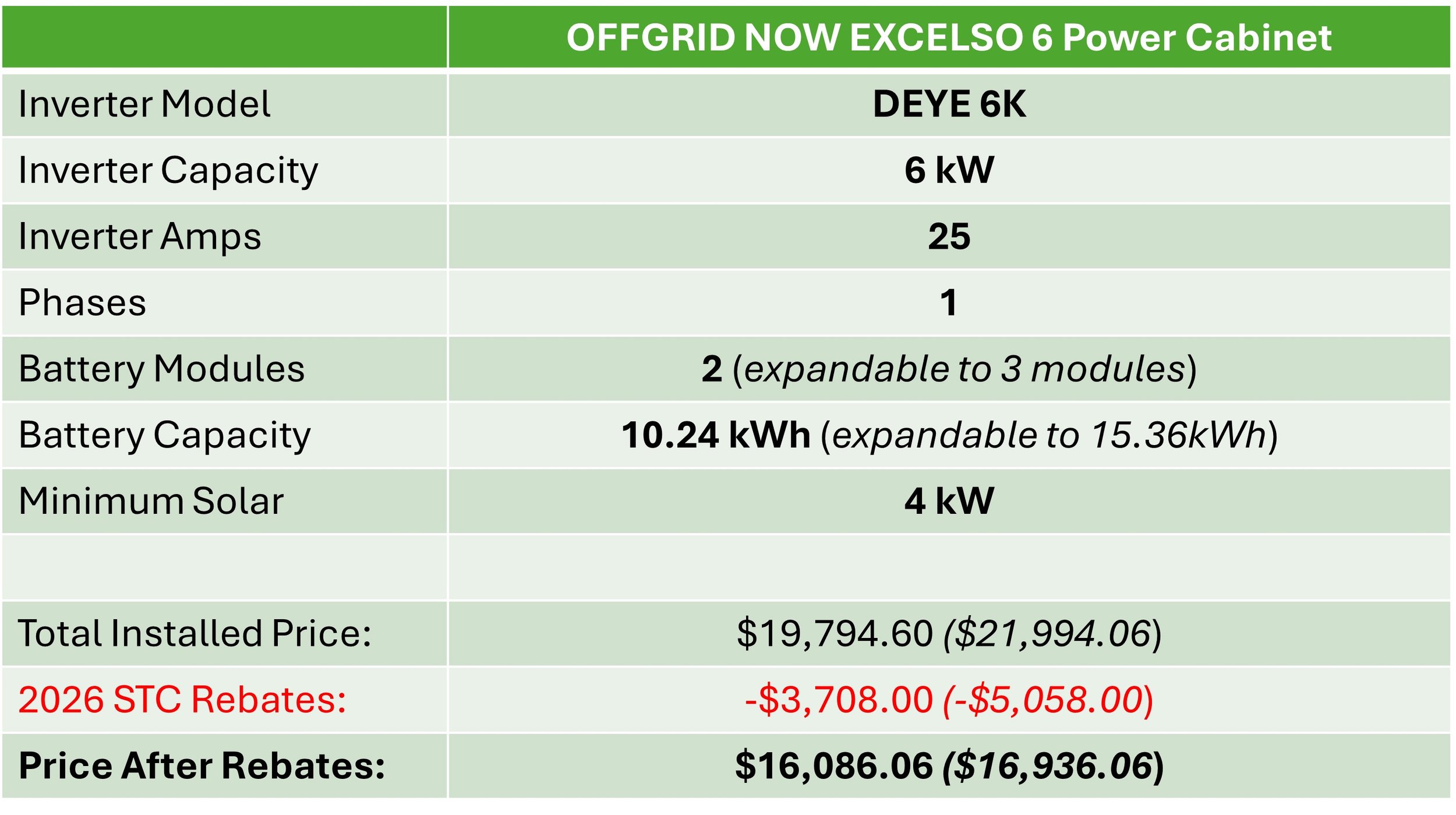 *These prices are supplied as a guide only and require an Off-Grid Assessment to be completed before supplying a formal quote. Price includes GST and STC rebates effective from 1st January 2026. Price does not include cost of a back-up generator.