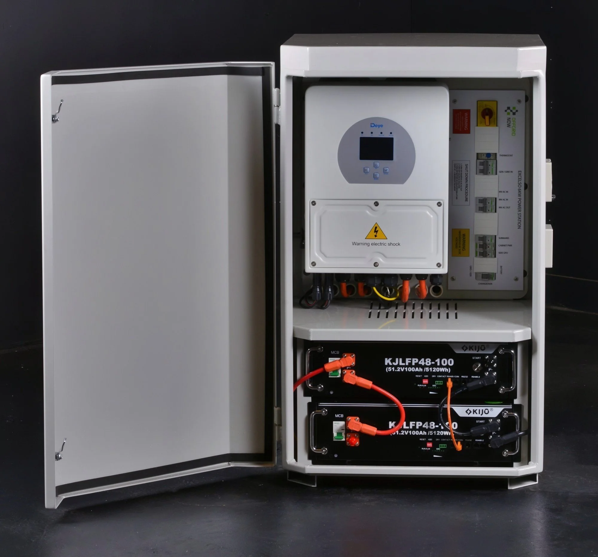 The OFFGRID NOW® PICCOLO 5 power cabinet is fitted with the powerful 5kW DEYE hybrid inverter range, and is VPP-Capable. Our SAA accredited off-grid solar installers ensure that the inverters in our OFFGRID NOW® power cabinets are safely integrated into your dwelling and comply with Australian Standards and Regulations. VPP-capable inverters enable you to sell your excess energy back to an energy retailer, or if you want to be off-grid but live within a 1km of a grid-connection you can qualify for the rebate without needing to supply written evidence of the cost of a grid-connection from a Distribution Network Service Provider.