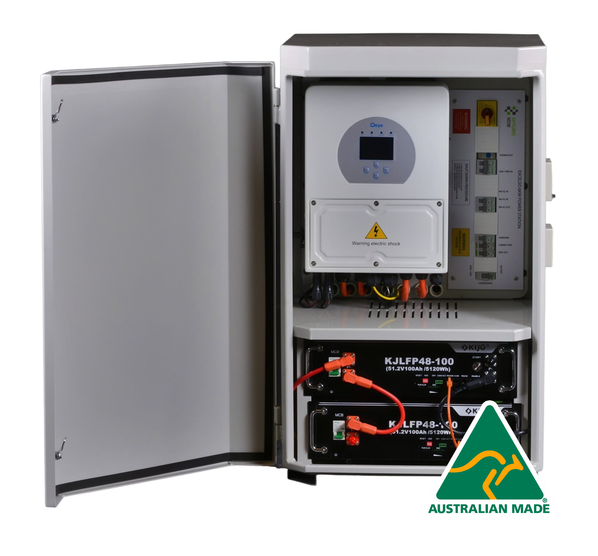 OFFGRID NOW® PICCOLO 5 power cabinets are Australian made to our design and specification in Brisbane, QLD. Our cabinets are manufactured to the highest standards of quality, utilising powder coated, 3mm aluminium, and assembled in our facility at Coolum Beach on the Sunshine Coast, QLD. Our cabinets are designed from the ground up to be rust-free and come backed with a 10 year warranty. With easy to access, front mounted lockable swing doors, you can sleep easy knowing your inverter and battery are stored safe and secure inside - for the long term.
