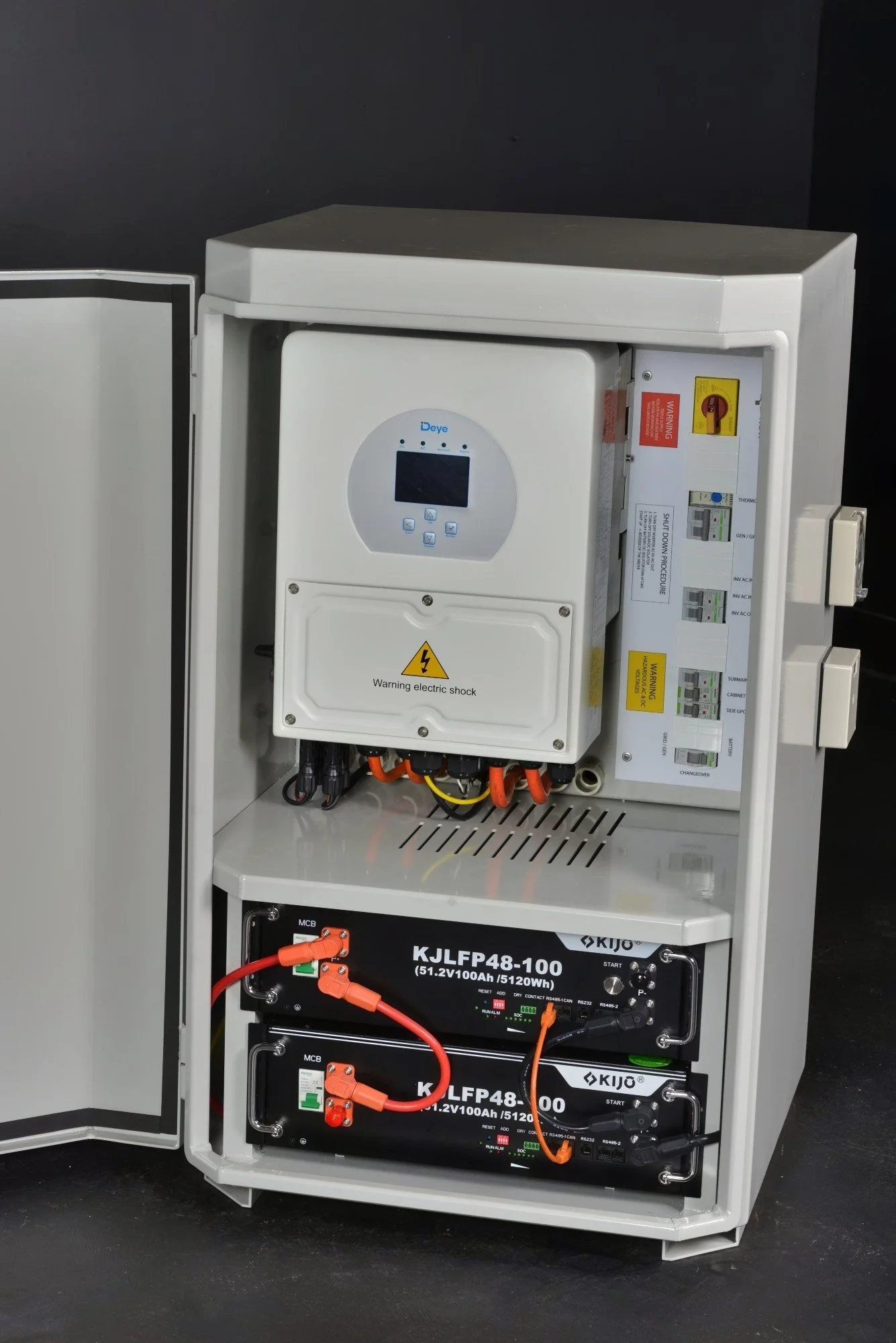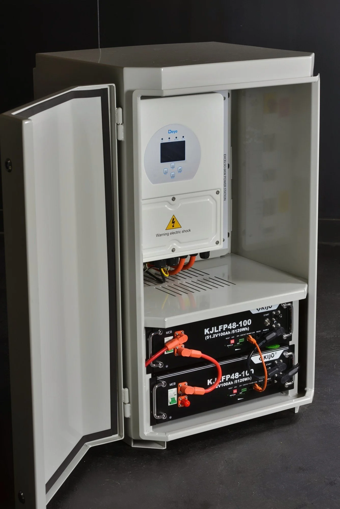 The OFFGRID NOW® PICCOLO 5 power cabinet comes as a standard package with a 5kW inverter, 5.12kWh of battery storage and 3W of solar panels. The system can be expanded to 10.24kWh of battery storage and up to 7.5kW of solar panels.