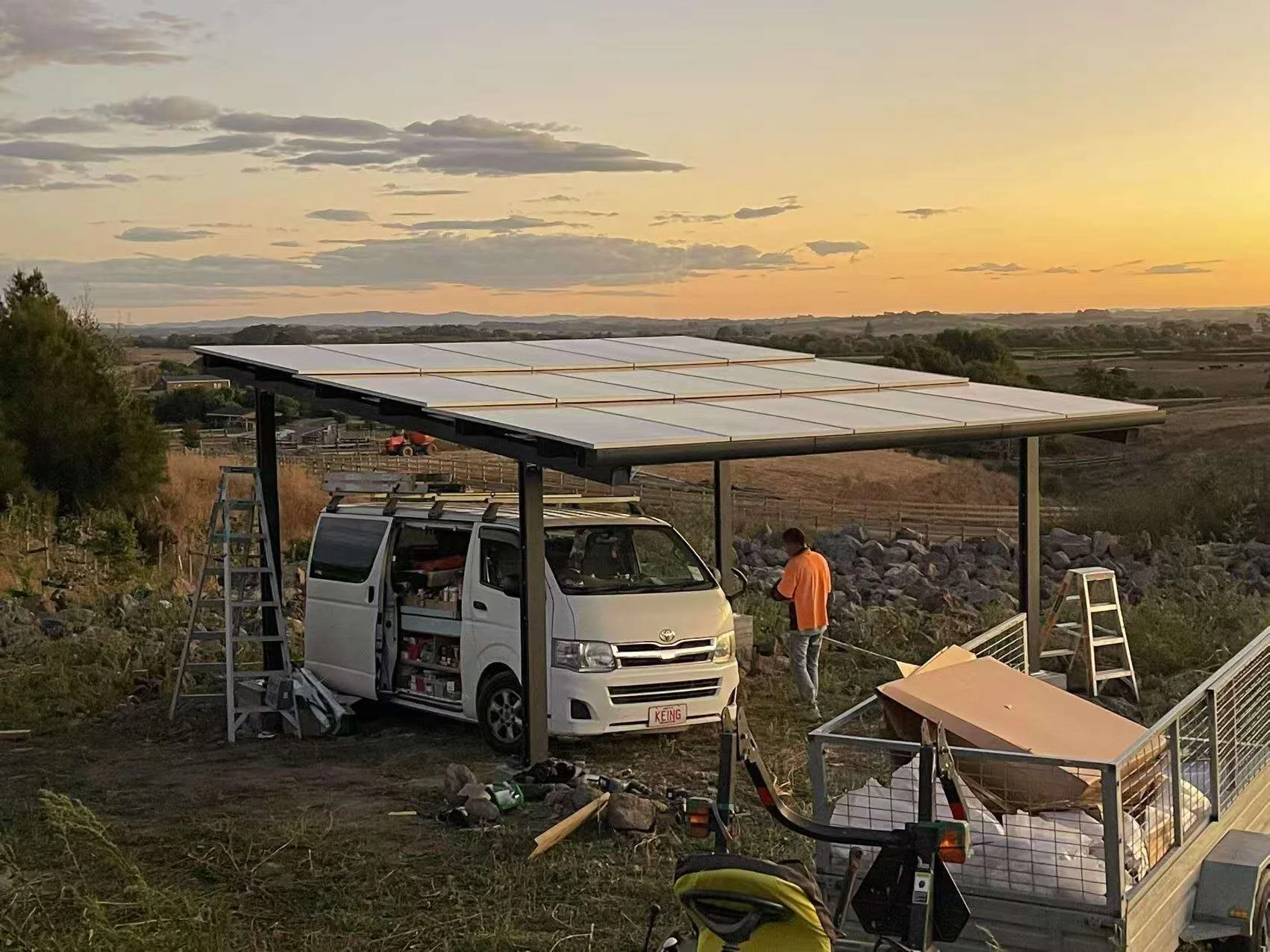 Why settle for a traditional carport when you can have a Solar Carport? This integrated waterproof solar carport not only protects your vehicle, but also provides free charging and power for your home, turning expenses into a smart investment. With its modular design and quick 3-hour installation, the Solar Carport has a shorter payback period, resulting in long-term savings and peace of mind. Save money on electricity, reduce your expenses, and reap the benefits of sustainable living. The Solar Carport is perfectly partnered with Offgrid Now® power cabinets, combining a cutting edge solar shade structure with the innovative inverter and battery power cabinets Piccolo, Excelso, Daily Grind, Robusta and Forza.